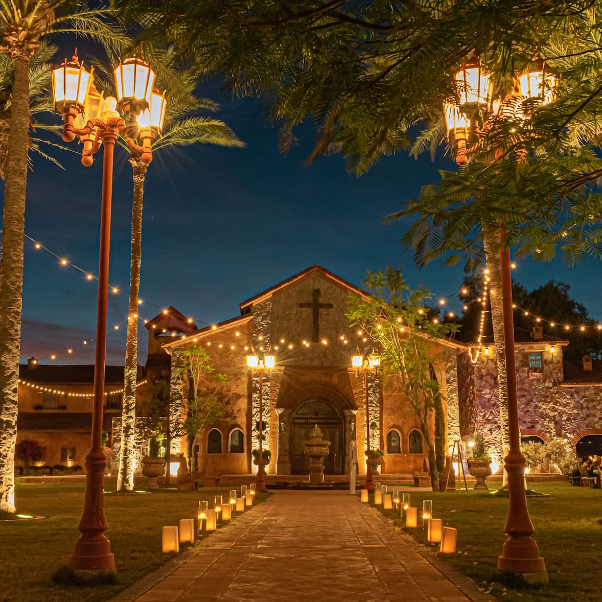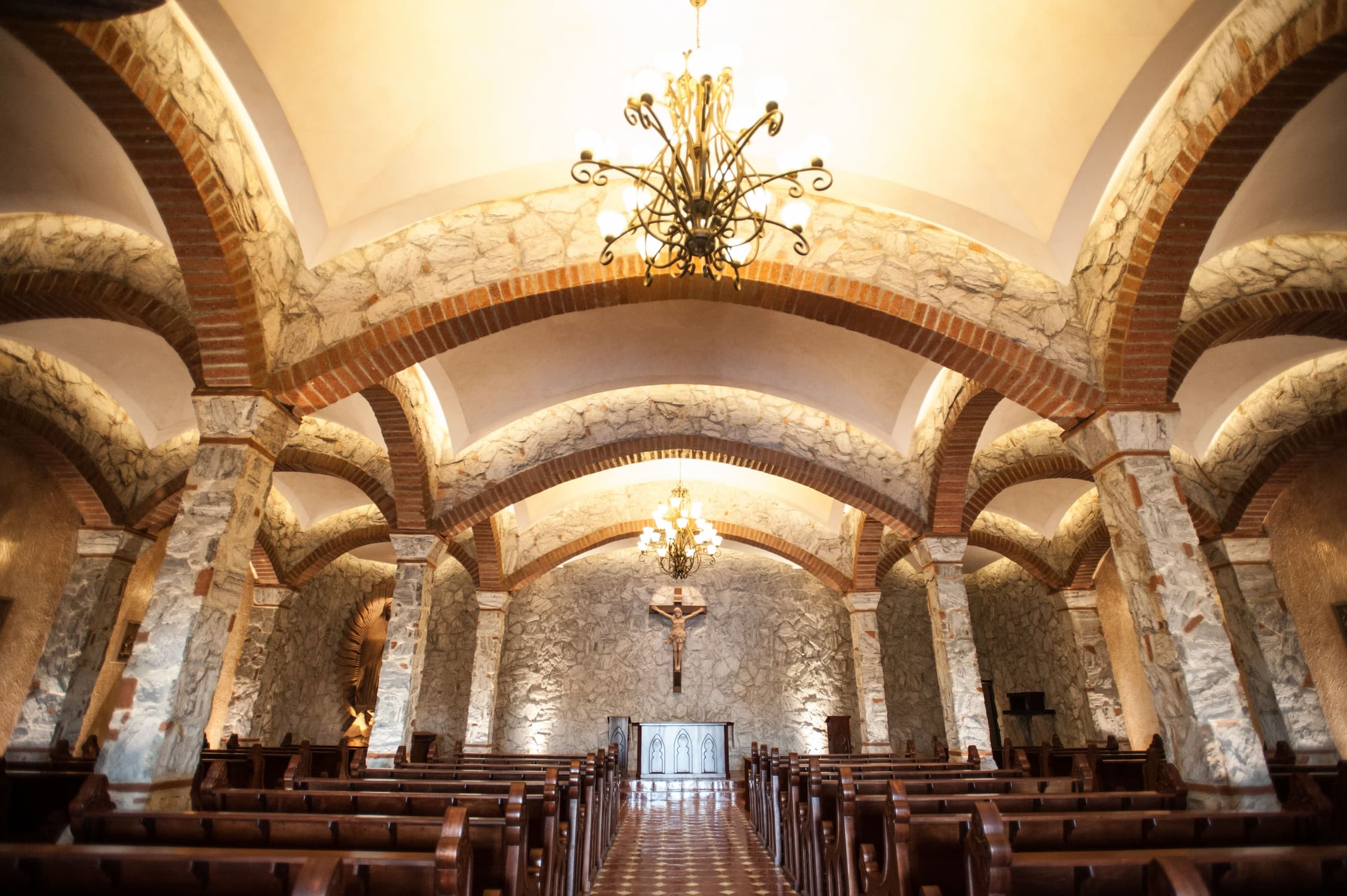 La Iglesia de Nuestro Señor Jesús será el marco ideal para tu ceremonia religiosa. Custodiada por dos árcangeles y Virgen de Guadalupe tallados a mano en cantera. Para uso exclusivo de clientes. Capacidad de hasta 320 pax.