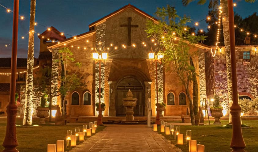 La Iglesia de Nuestro Señor Jesús será el marco ideal para tu ceremonia religiosa. Custodiada por dos árcangeles y Virgen de Guadalupe tallados a mano en cantera. Para uso exclusivo de clientes. Capacidad de hasta 350 pax.