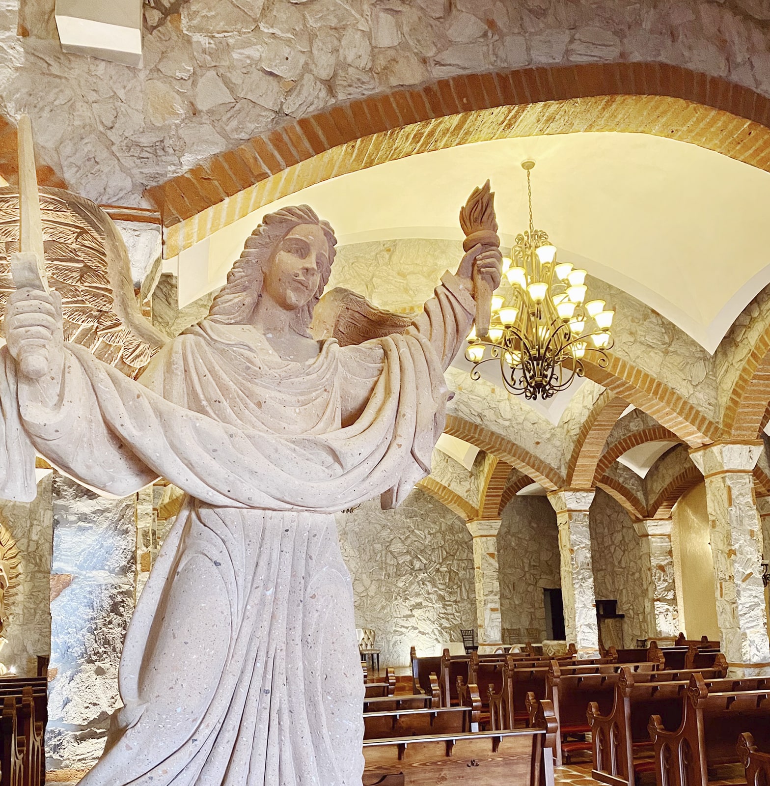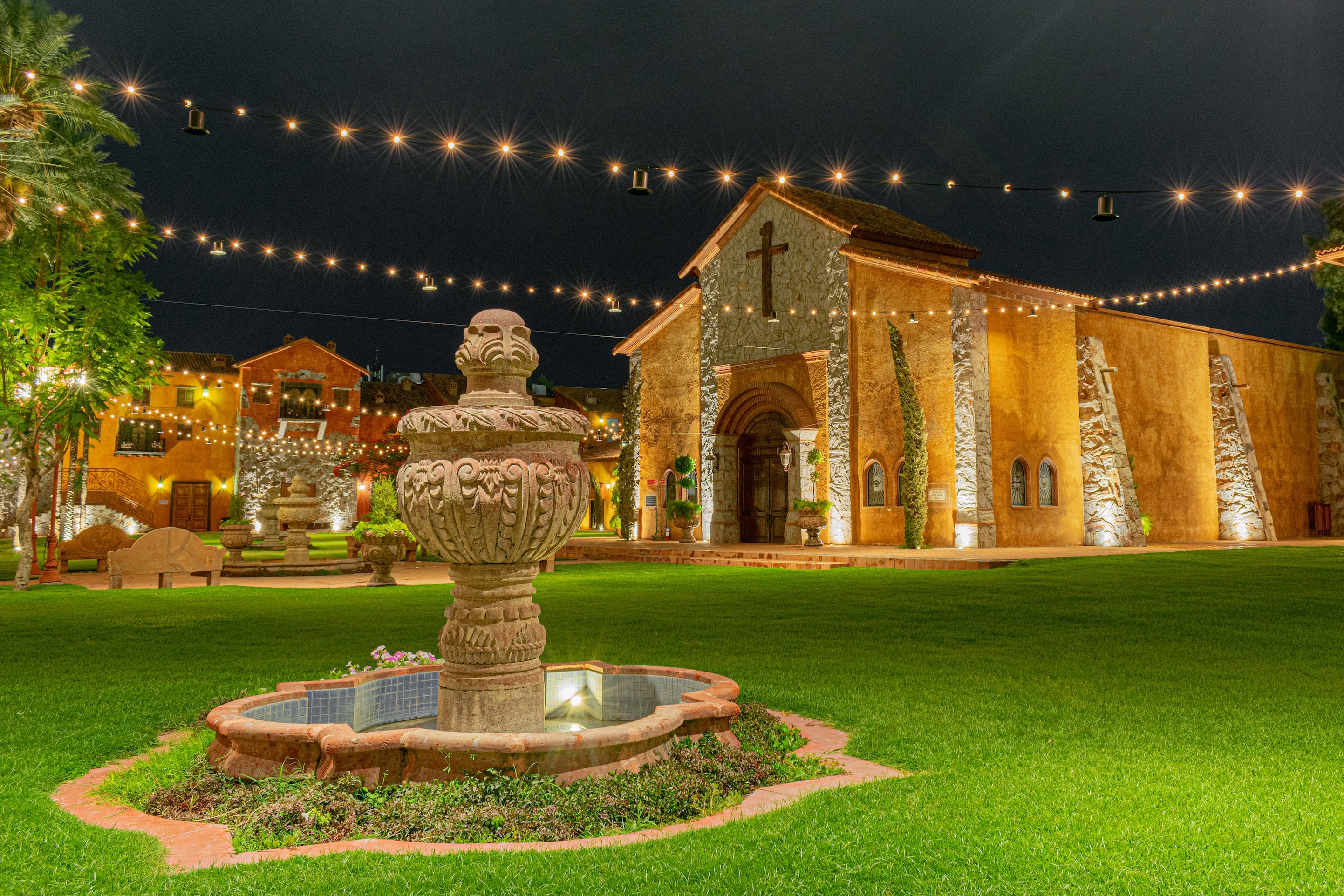 La Iglesia de Nuestro Señor Jesús será el marco ideal para tu ceremonia religiosa. Custodiada por dos árcangeles y Virgen de Guadalupe tallados a mano en cantera. Para uso exclusivo de clientes. Capacidad de hasta 320 pax.